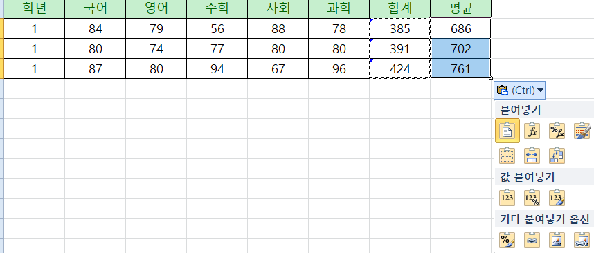 👉 값 + 수식 + 서식을 전부 같이 붙여넣습니다.