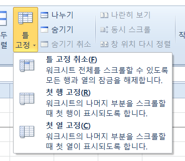 엑셀에서 행 고정은